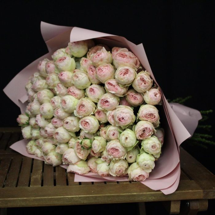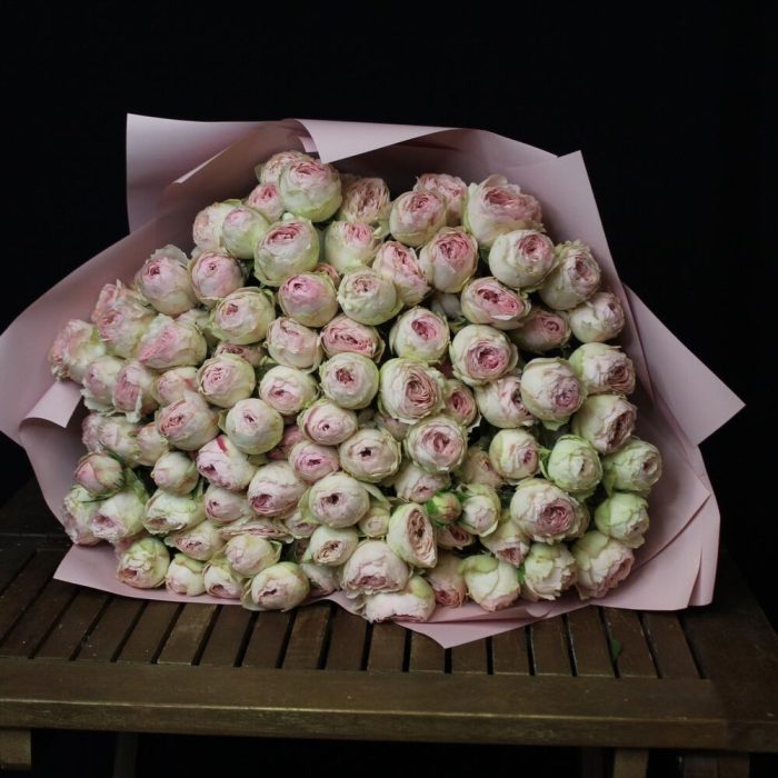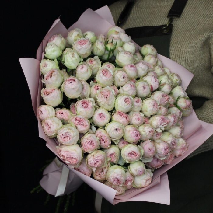 менсфилд парк кустовая пионовидная – 25 шт.Пленка матовая – 5 шт.Лента атласная – 2 шт.