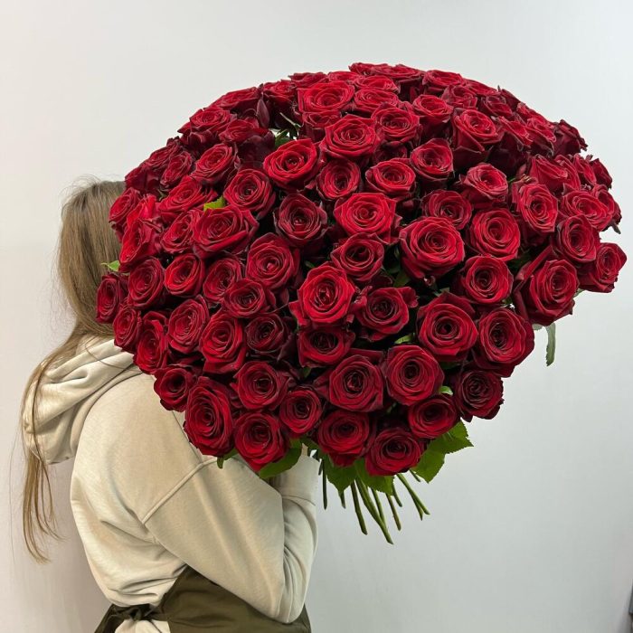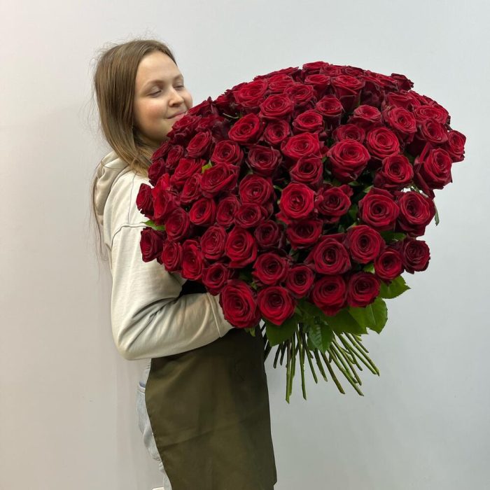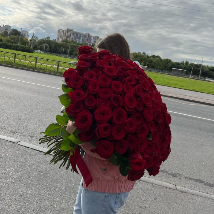 Роза красная – 101 шт.Упаковка дизайнерская – 1 шт.
