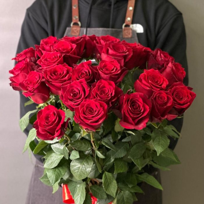 Монобукет из 25 роз сорта Freedom (70 см)