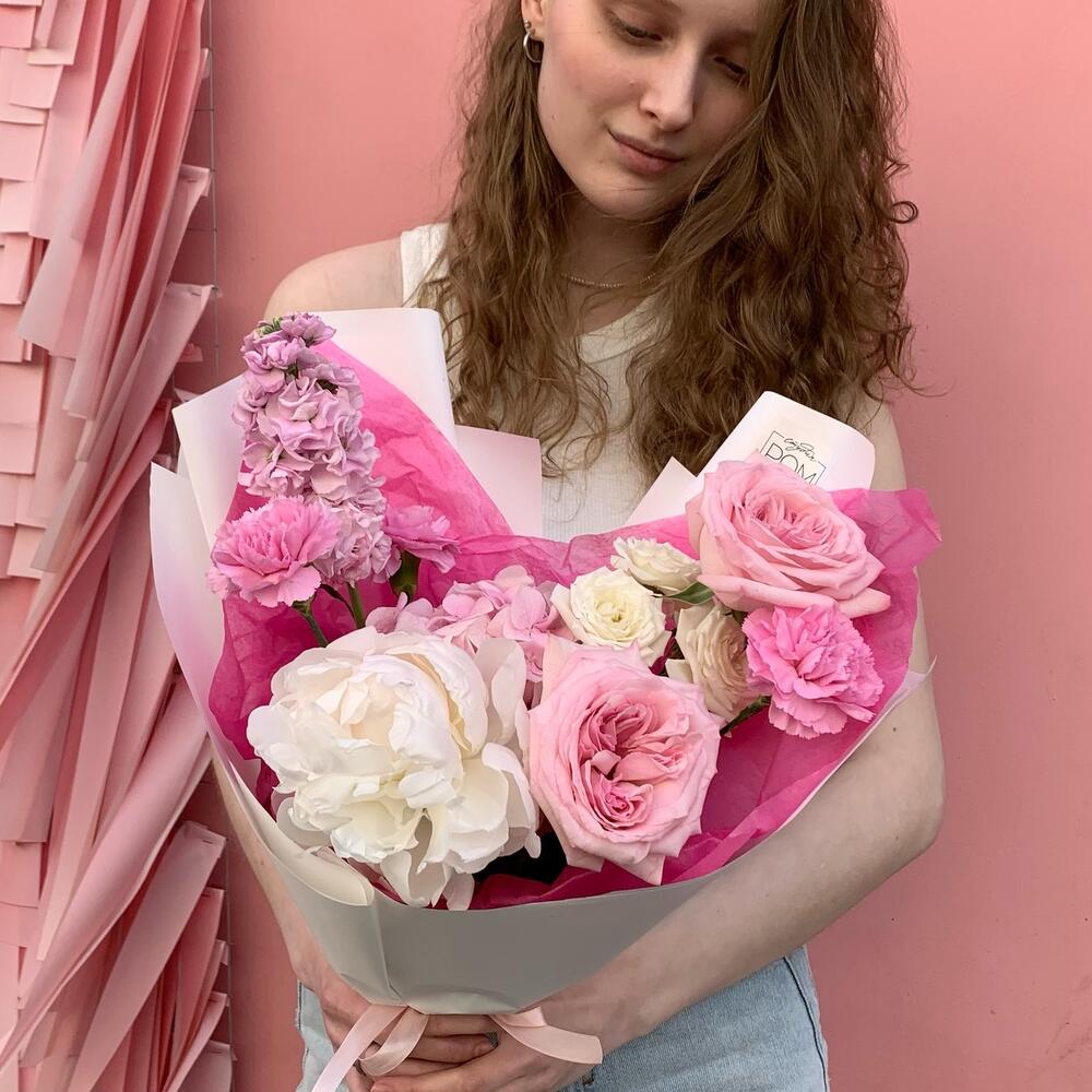 Нежный букет "Воздушный" с розовыми французскими розами