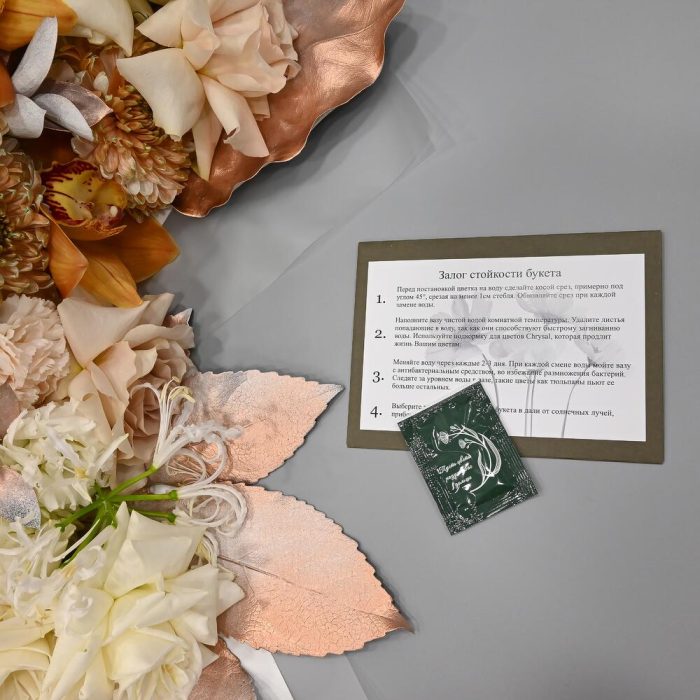 - Сроки возврата: Претензии по качеству букета принимаются в течение 24 часов с момента его получения.
