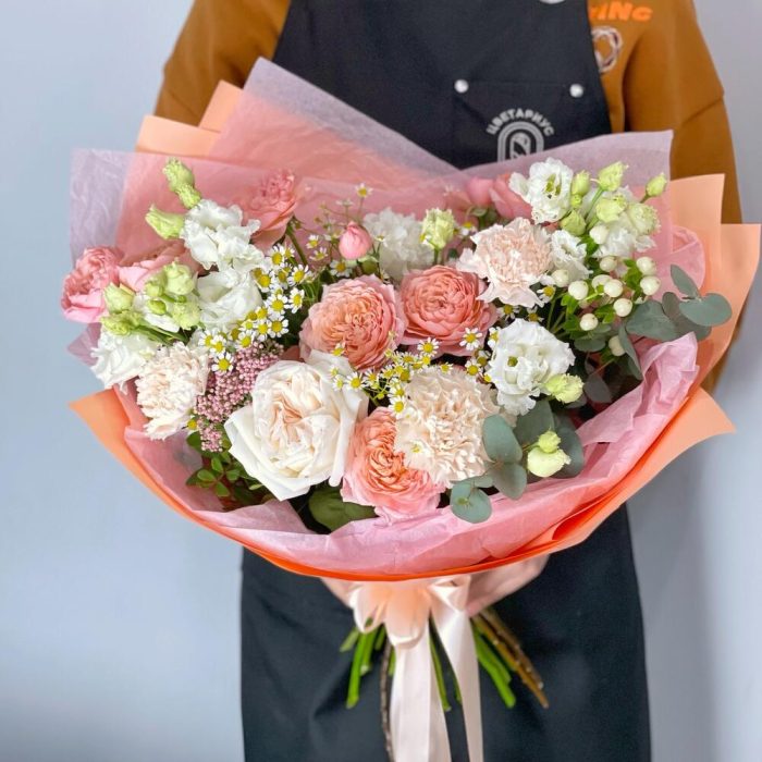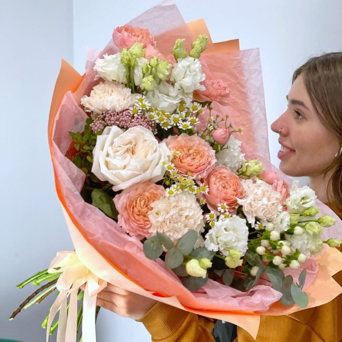 Персиковый букет в дизайнерском оформлении