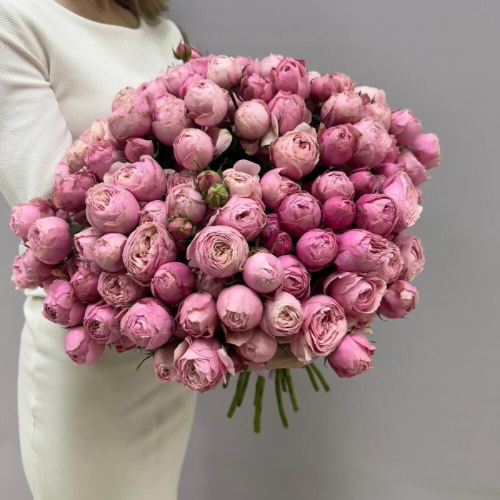 Сильвия Пинк красиво и с любовью упакованных в классный букет передадут настроение праздника своей обладательнице. Оттенок роз может немного отличаться.Silvia pink – шикарная кустовая пионовидная роза, по приятной и вкусной цене – нет аналогов этому предложению и не будет. И нет аналогов этому сорту. Эксклюзивная Роза премиум класса.Кустовая пионовидная Роза , сорт Silvia Pink, цвет : розовый.Высота : 40-50 см, лёгкий аромат.Кол-во цветков на стебле: 3-5 шт.Устойчивость к жаре : низкаяВесь цветок свежий, проходит контроль качества.