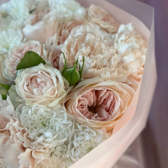 Гвоздики, Кустовые розы, Пионовидные розы, Розы