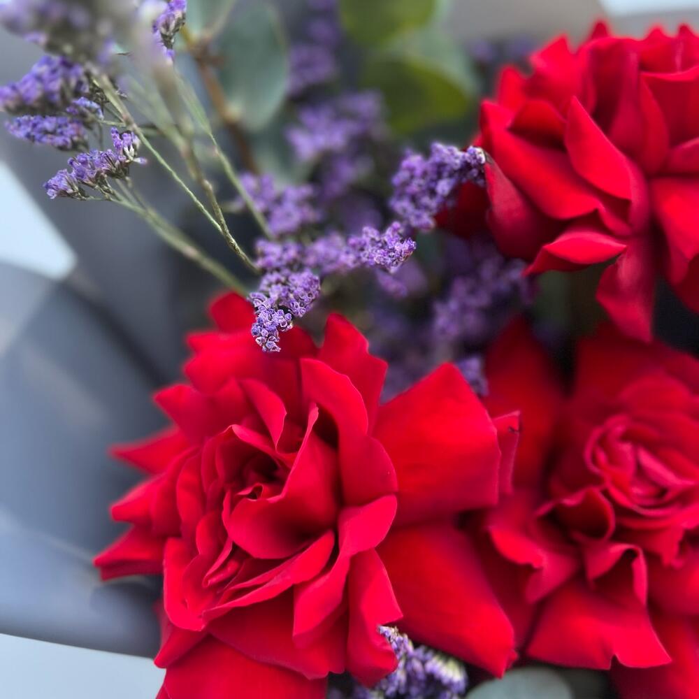 Лимониум – 1 шт.Эвкалипт – 1 шт.Лента атласная – 1 шт.Роза фридом – 3 шт.Пленка матовая – 1 шт.