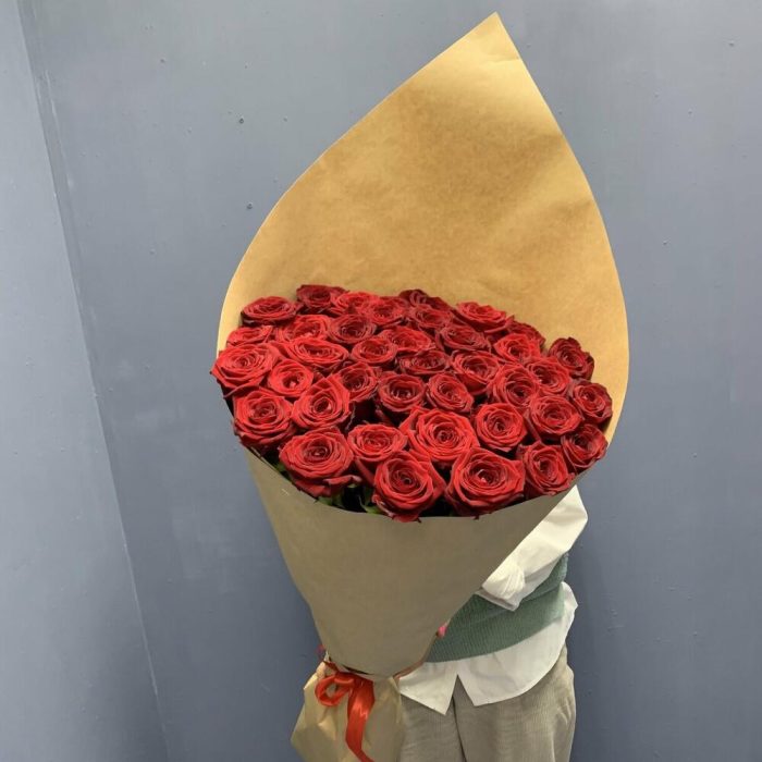 розы эквадор 80 см – 35 шт.Крафт упаковка – 2 шт.Лента атласная – 1 шт.
