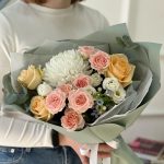 Сборный букет с одноголовой хризантемой и розами «Принцесса Нурри» 44