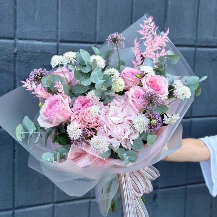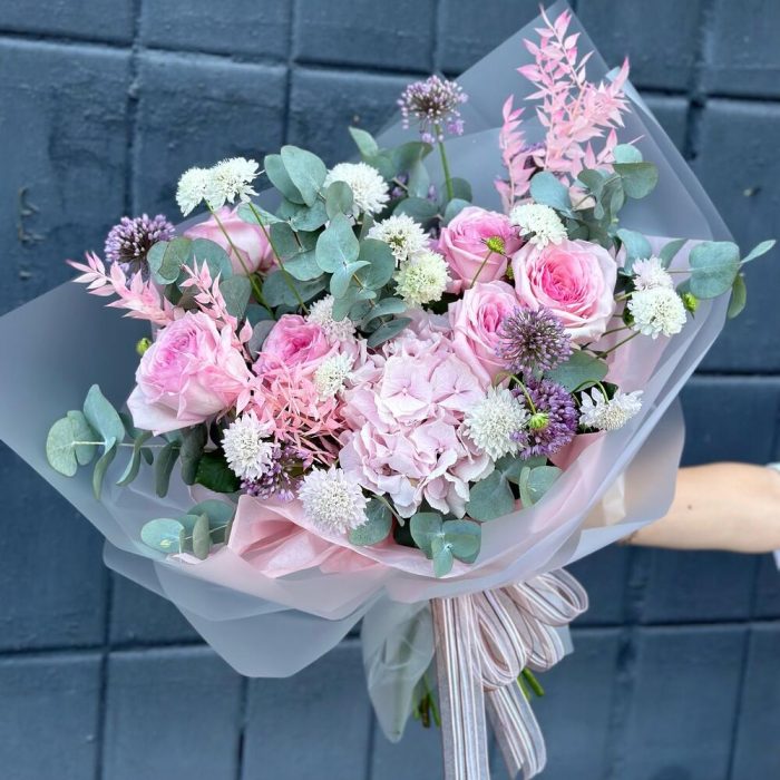 Гвоздики, Кустовые розы, Лизиантусы, Пионовидные розы, Розы