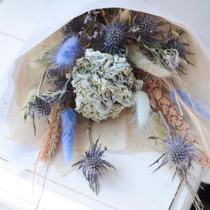 гортензия сухоцвет – 1 шт.Сетария – 2 шт.Лимониум – 1 шт.Эрингиум – 9 шт.Лагурус – 8 шт.Упаковка дизайнерская – 1 шт.