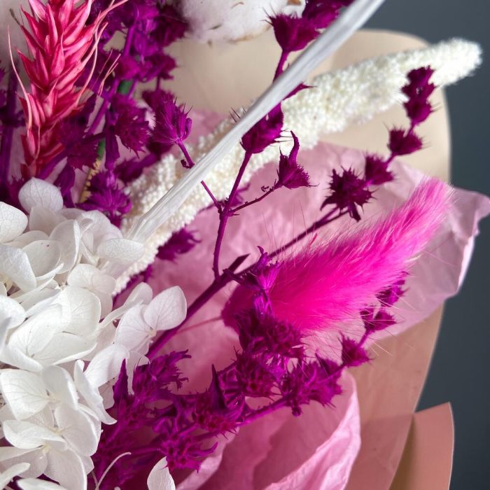 Букет из сухоцветов в розовых тонах с хлопком