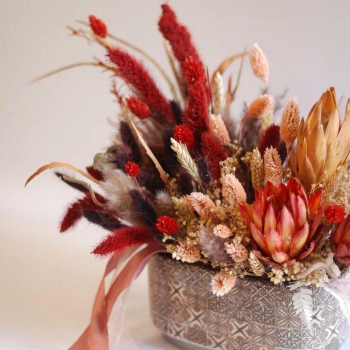 Интерьерная композиция из сухоцветов в кашпо