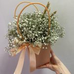 “Сиреневый туман” – композиция из гипсофилы в шляпной коробке