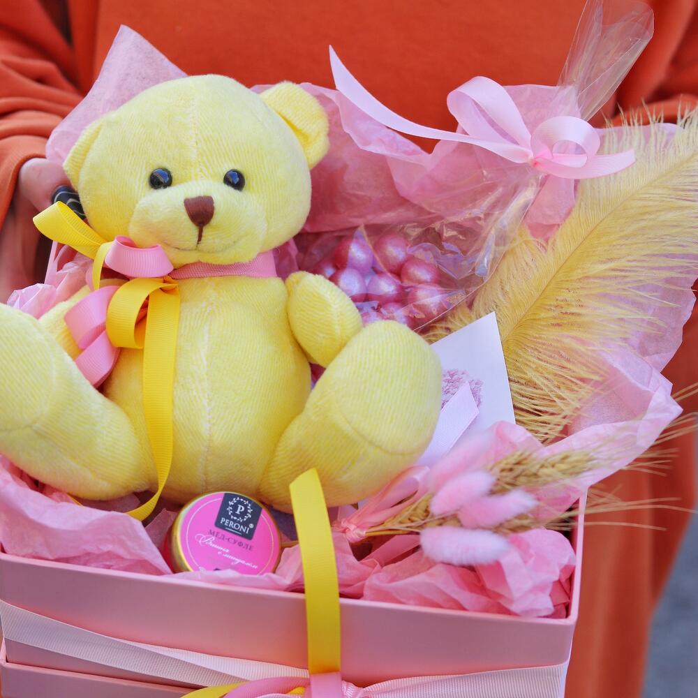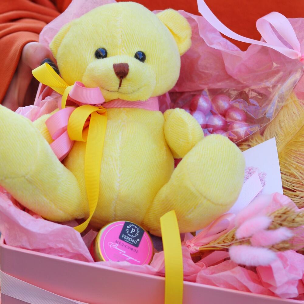 Нежный подарочный набор, который подойдёт для любого повода очень чутким и эмоциональным натурам.В состав набора входит стильная игрушка-мишка, мёд-суфле, свеча ручной работы, букет из сухоцветов и подарочная открытка.Подарите незабываемые впечатления Вашим близким … Показать ещёс чудесным подарочным набором❤️