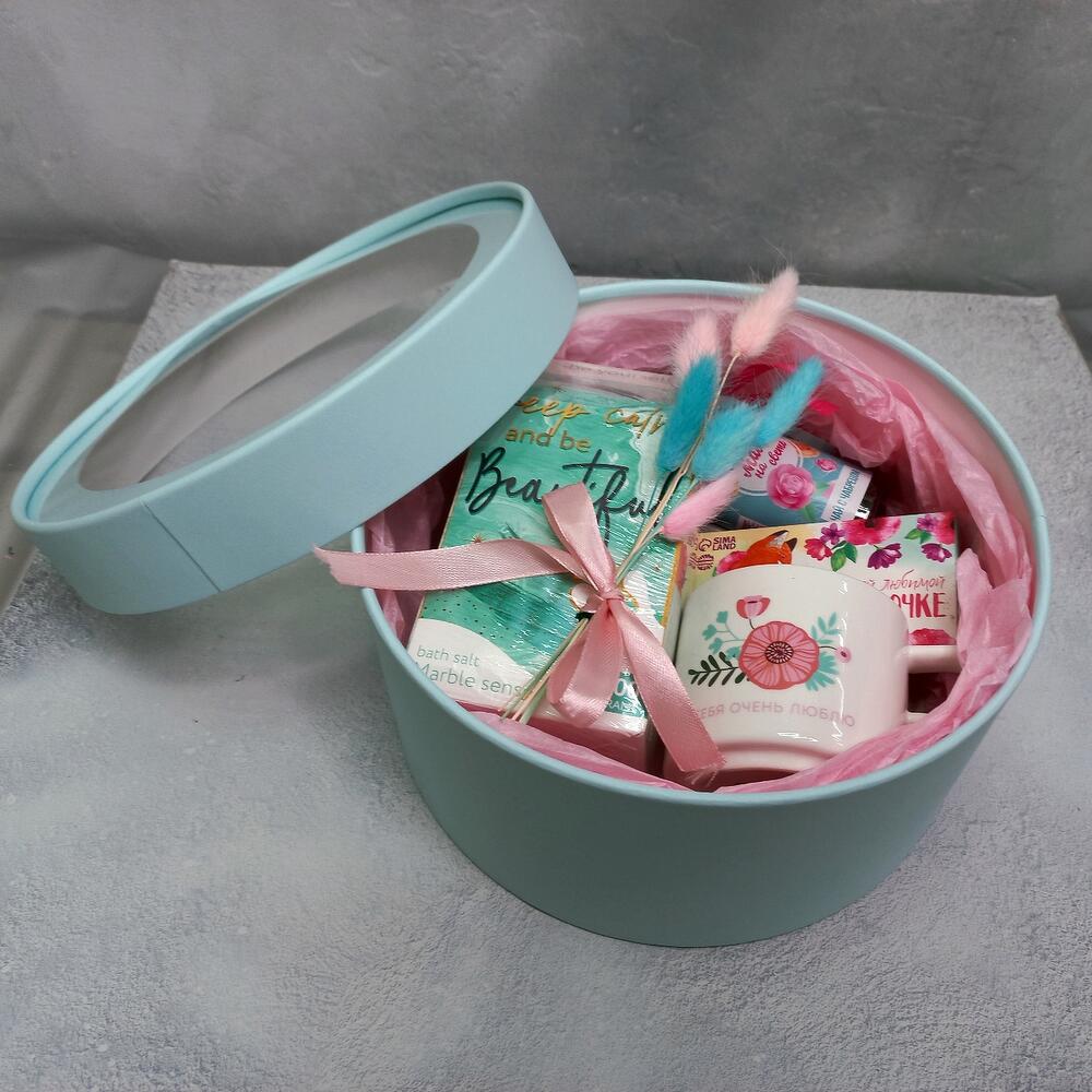 "Сиреневый туман" - композиция из гипсофилы в шляпной коробке