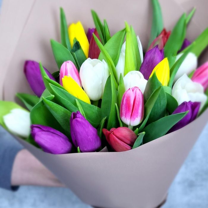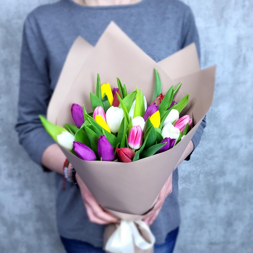 25 разноцветных тюльпанов