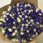ирис премиум – 101 шт.тюльпан белый премиум – 100 шт.Подарочная упаковка – 1 шт.