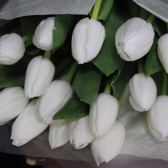 Тишью – 1 шт.Пленка матовая – 3 шт.тюльпан белый голландия – 15 шт.