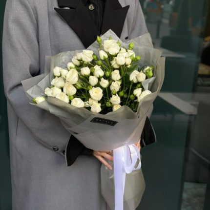 mono bouquet 120 из 15 кустовых пионовидных роз сорта Mansfield park